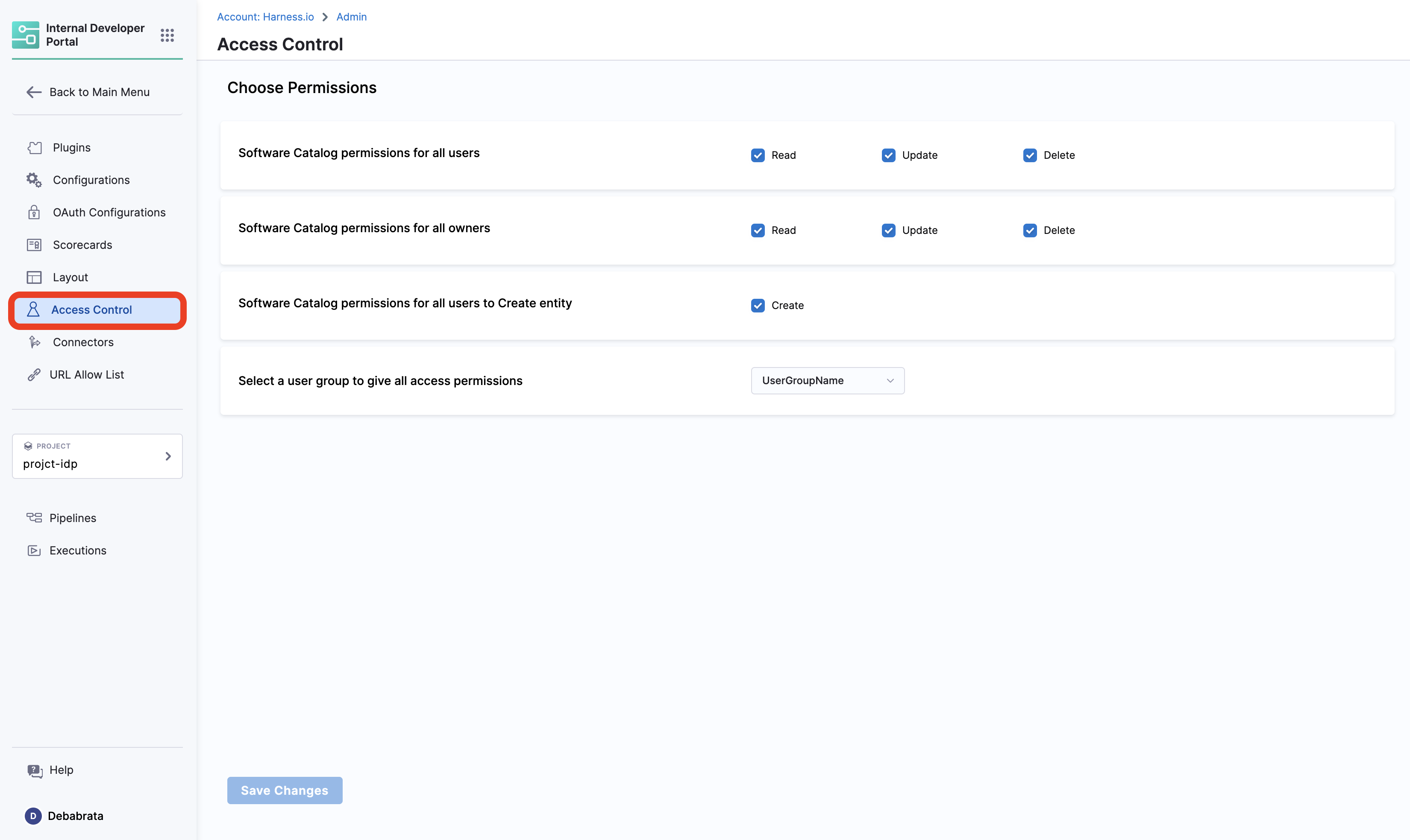 To learn more about the entities, permissions, and different scopes we've introduced with IDP 2.0, please refer to the Data Model here. To learn more about configuring Harness RBAC, visit Configure RBAC in Harness.