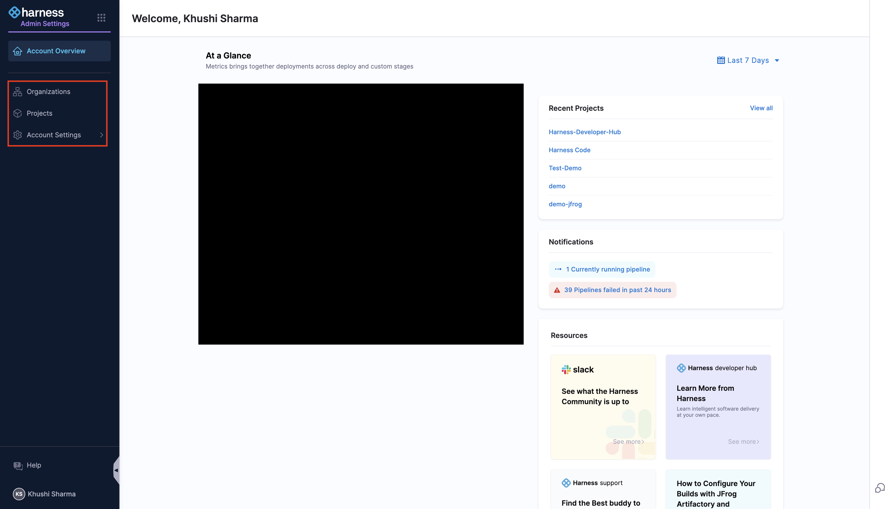 1. Go to your administrative settings and select the desired scope (Account, Org, or Project). Choose the specific Organization or Project where you want to configure RBAC, and navigate to its respective settings.