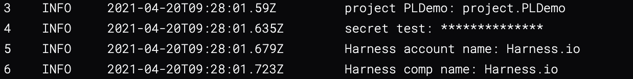 When a secret is displayed in an output, Harness substitutes the secret value with asterisks so that the secret value is masked. Harness replaces each character in the name with an asterisk (*).