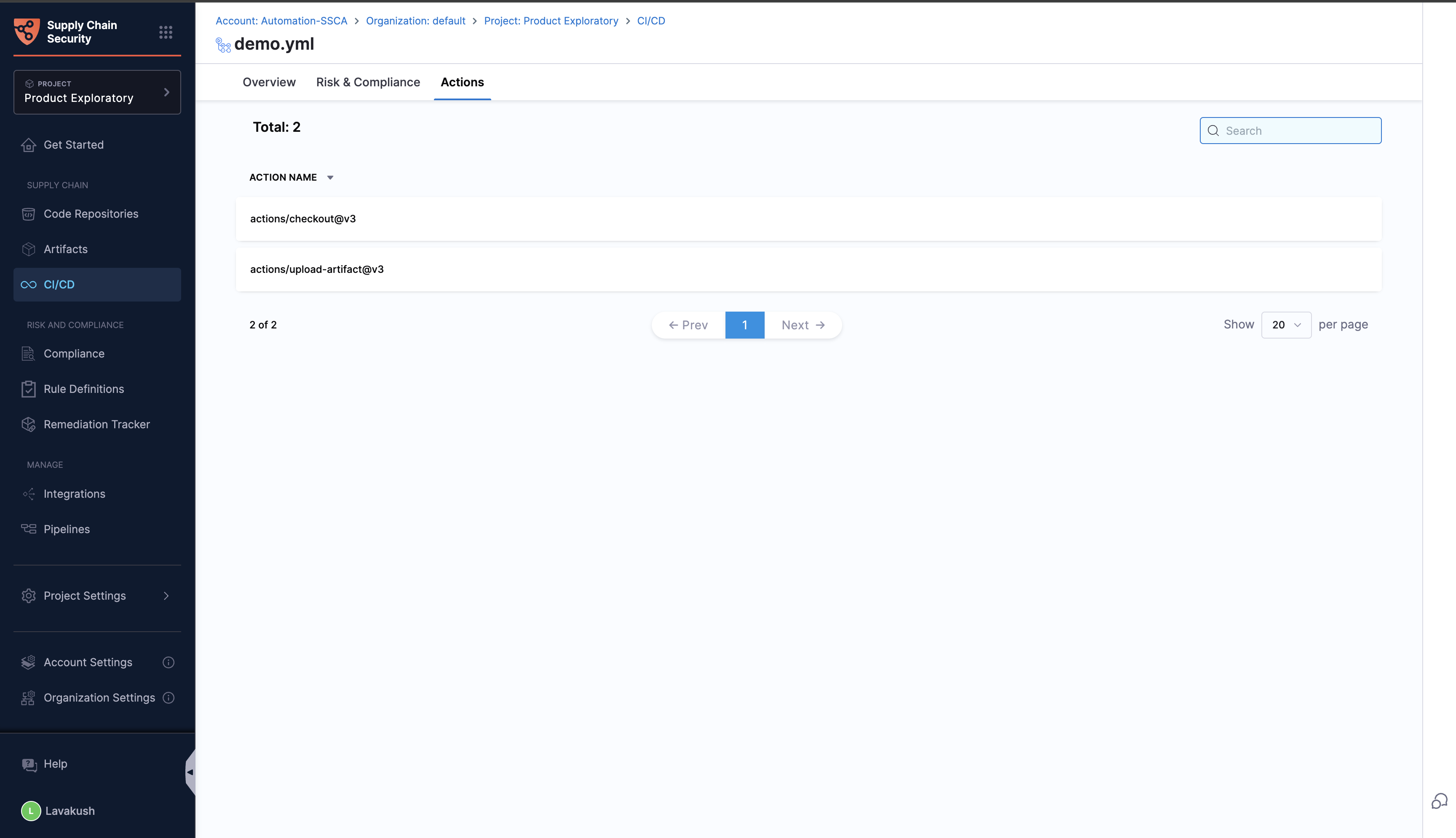 For a complete overview of your supply chain's compliance posture, refer Compliance Summary documentation.